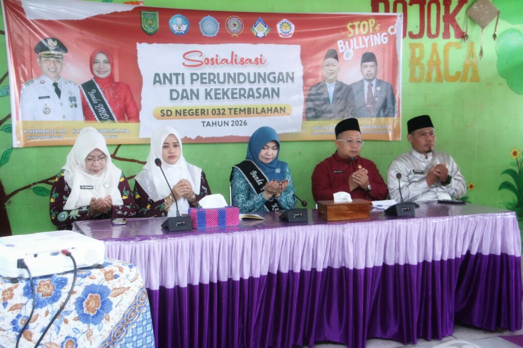 Tembilahan – Bunda PAUD Kabupaten Indragiri Hilir, Hj Katerina Susanti Herman, menghadiri kegiatan sosialisasi pencegahan dan penanganan kekerasan di satuan pendidikan yang digelar di SDN 032 Tembilahan, Jumat (27/02/2026) pagi.