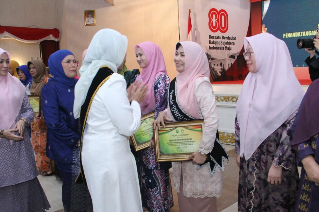 Pada momentum berharga ini, Bunda PAUD Inhil Hj. Katerina Susanti menerima piagam penghargaan sebagai Bunda PAUD Kabupaten/Kota Inspiratif yang diserahkan langsung oleh Bunda PAUD Provinsi Riau.