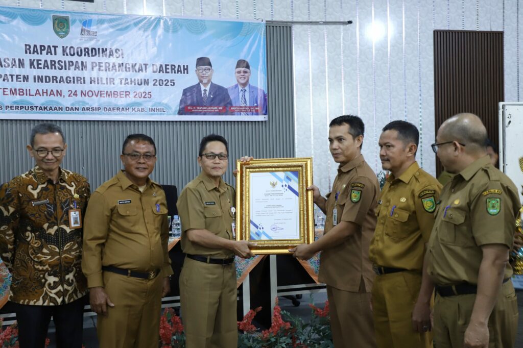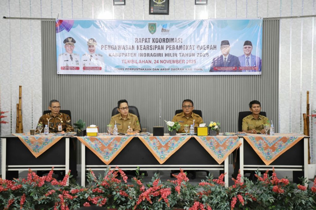 Tembilahan, 24 November 2025 Bupati Inhil, H. Herman diwakili oleh Asisten I Setda Inhil, H. Fajar Husein menghadiri sekaligus membuka Rapat Koordinasi Pengawasan Kearsipan di Lingkungan Pemerintah Kabupaten Inhil.