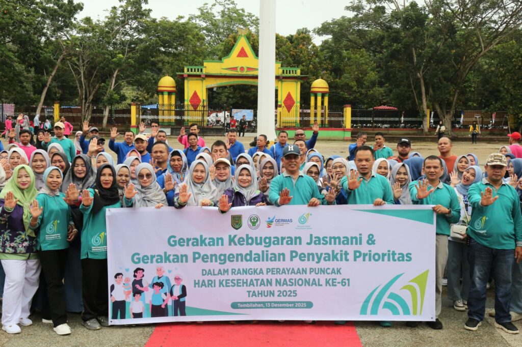 Tembilahan, -Bupati Indragiri Hilir, H. Herman, SE, MT bersama Ketua TP PKK Hj. Katerina Susanti Herman menghadiri Puncak Peringatan Hari Kesehatan Nasional (HKN) ke-61 Tingkat Kabupaten Inhil Tahun 2025 yang di laksanakan di lapangan Gajah Mada Tembilahan, Sabtu, (13/12/2025).