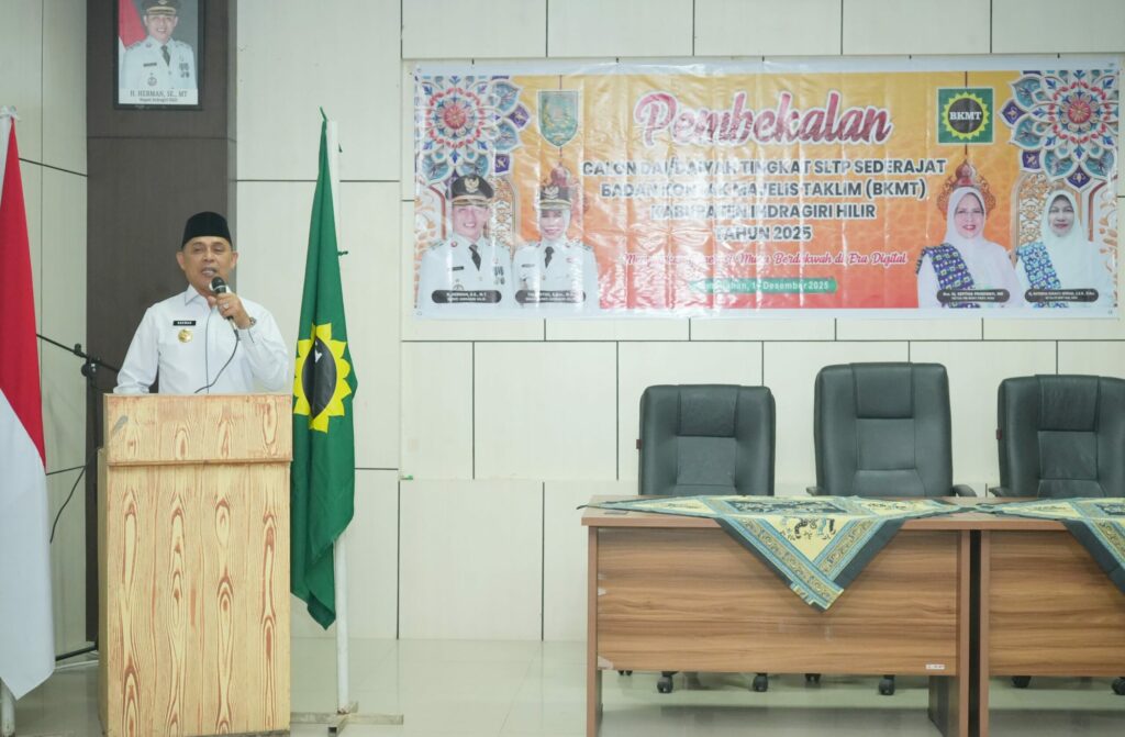 Rilis: Tembilahan – Bupati Indragiri Hilir (Inhil) H. Herman, SE., MT bersama Ketua Badan Kontak Majelis Ta’lim (BKMT) Inhil Hj. Katerina Susanti, SKM., M.Kes menghadiri sekaligus membuka kegiatan Pembekalan Dai dan Daiyah tingkat SLTP sederajat, Rabu (17/12/2025), di Aula Dinas Pendidikan Kabupaten Inhil.