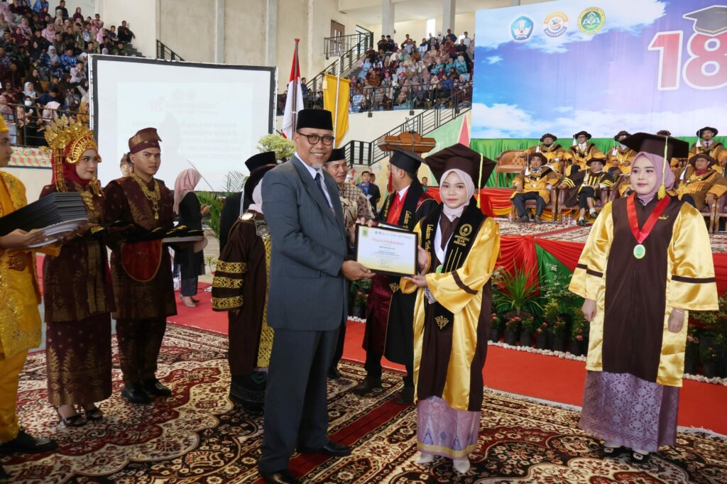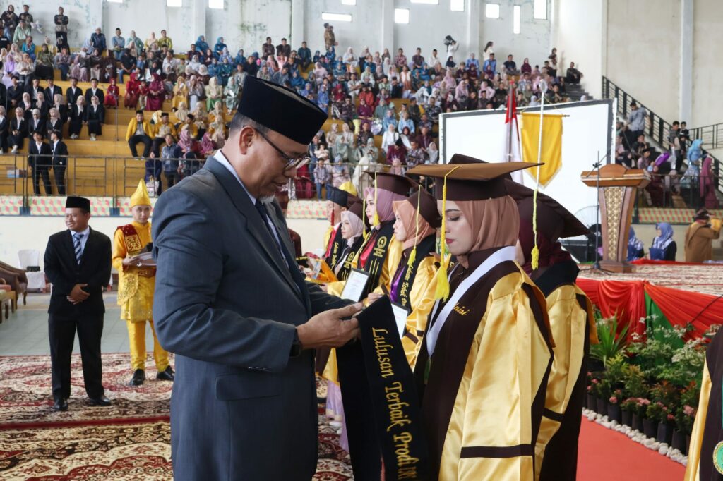 Acara berlangsung khidmat dengan prosesi akademik, penyerahan ijazah serta penghargaan kepada lulusan terbaik.