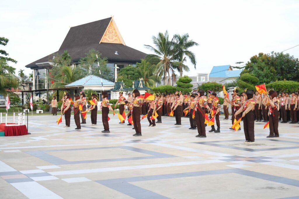 Bupati Indragiri Hilir (Inhil) H. Herman, yang juga selaku Ketua Majelis Pembimbing Cabang (Kamabicab) gerakan Pramuka Inhil memimpin secara langsung Upacara Gelar Senja yang dilaksanakan di halaman Rumah Dinas Bupati, selasa (14/10/2025) sore.