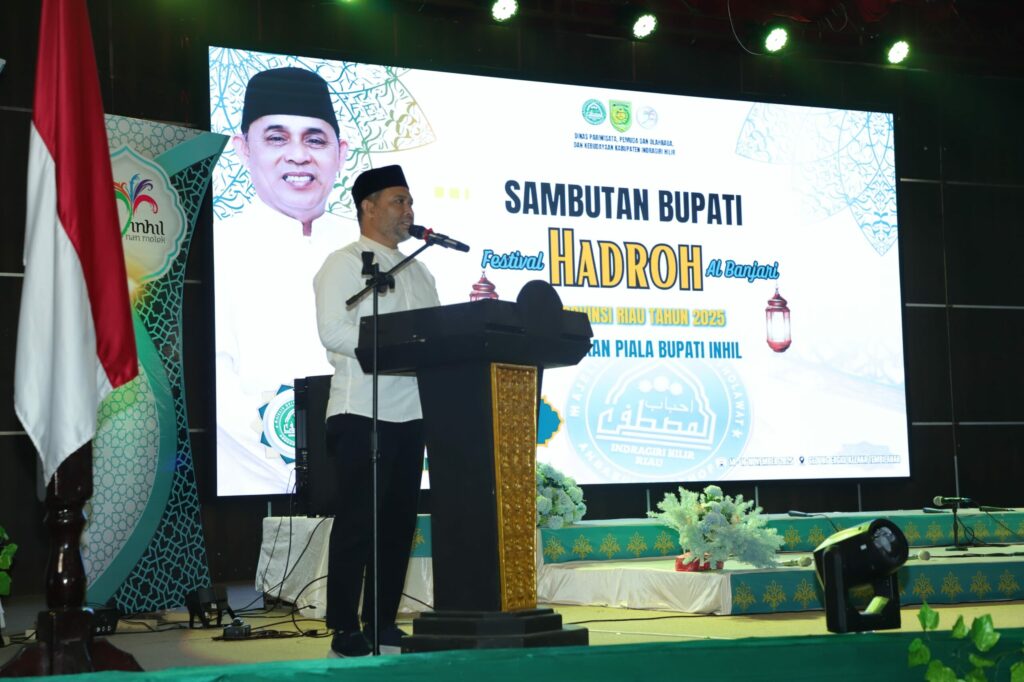 Mewakilkan Bupati Indragiri Hilir, Staf Ahli Bupati Bidang Kemasyarakatan dan SDM H. Muammar Gaddafi membuka Festival Hadroh Al-Banjari se Prov. Riau Th. 2025, Jum’at (14/11/2025).