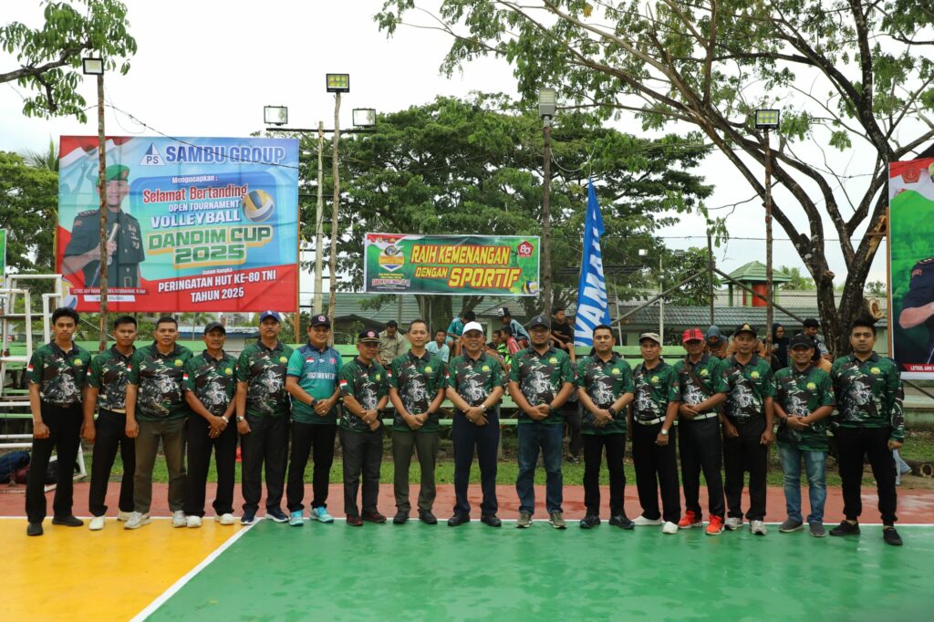 Bupati Indragiri Hilir H. Herman, SE, MT membuka Semi Open Turnamen Volley Ball Putra Dandim 0314/Inhil Cup Ke-7 yang dilaksanakan di lapangan bola volley Kodim O314/Inhil, Sabtu (20/09/2025).