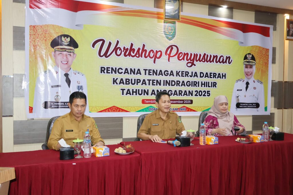 Pemerintah Kabupaten Indragiri Hilir melalui Dinas Tenaga Kerja dan Transmigrasi (Disnakertrans) menggelar Workshop Penyusunan Rencana Tenaga Kerja Daerah (RTKD) Tahun 2025, bertempat di salah satu Hotel di Tembilahan, selasa (23/12/2025).