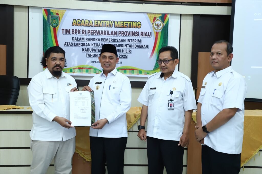 Bupati Indragiri Hilir H. Herman, SE, MT menghadiri Entry Meeting Tim Pemeriksa BPK RI Perwakilan Prov. Riau bersama Pemerintah Kabupaten Inhil dalam rangka pemeriksaan interim atas laporan keuangan Pemerintah Daerah Kabupaten Indragiri Hilir untuk Tahun Anggaran 2025, Rabu (18/02/2026).
