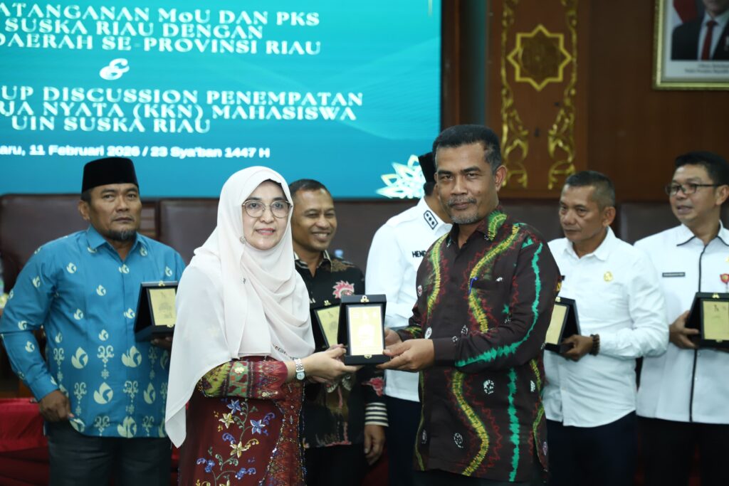 Bupati Indragiri Hilir yang diwakili Asisten Ekonomi dan Pembangunan Setda Kab. Inhil H. Dwi Budianto, S.Sos, M.Si menghadiri sekaligus menandatangani MoU dan PKS antara UIN Suska Riau dengan kepala daerah se Prov. Riau yang disejalankan dengan FGD penempatan kuliah kerja nyata mahasiswa UIN Suska Riau, Rabu (11/02/2026).
