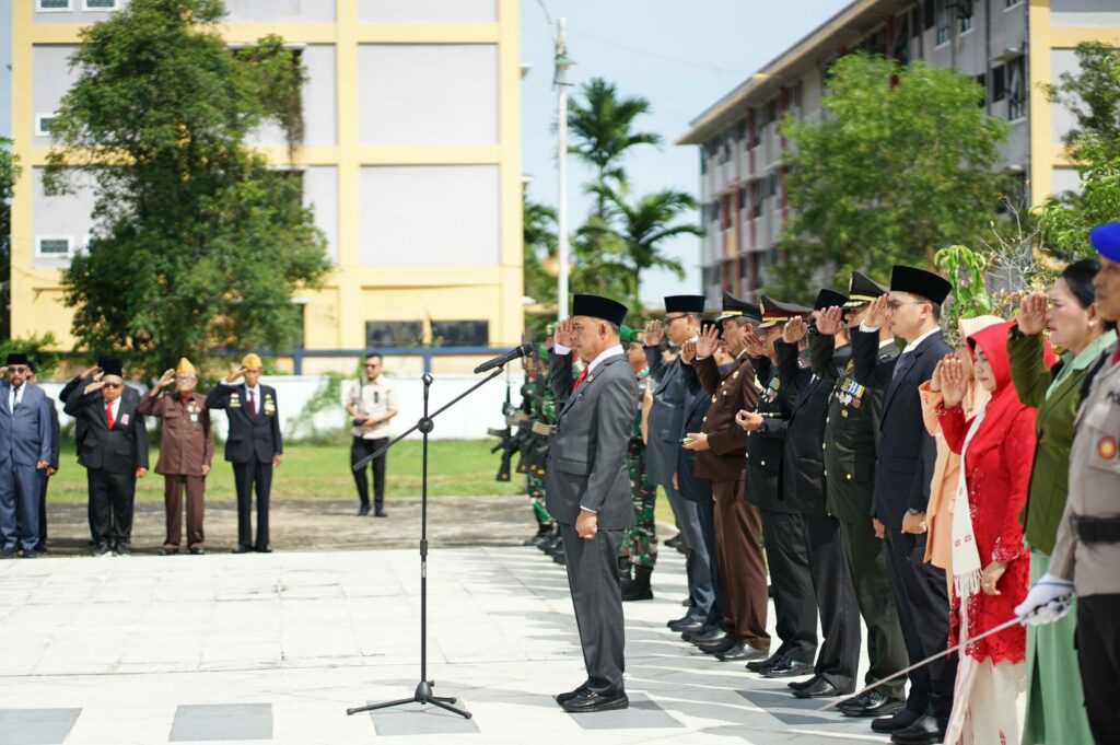 Tembilahan — Bupati Indragiri Hilir, H. Herman, SE., MT memimpin langsung Upacara Ziarah Nasional dalam rangka memperingati Hari Pahlawan Nasional Tahun 2025 yang berlangsung khidmat di Taman Makam Pahlawan Yudha Bhakti, Tembilahan, Senin (10/11/2025).