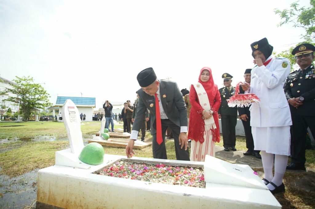Dalam suasana yang penuh khidmat, upacara diawali dengan penghormatan kepada arwah para pahlawan, dilanjutkan dengan peletakan karangan bunga oleh Bupati H. Herman, serta tabur bunga di pusara para pahlawan yang telah gugur memperjuangkan kemerdekaan bangsa.