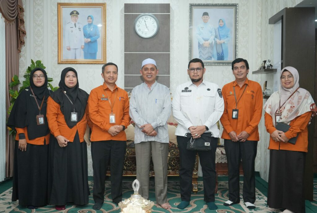 Tembilahan – Bupati Indragiri Hilir (Inhil) H. Herman, SE., MT didampingi Kepala Dinas Komunikasi, Informatika, Persandian dan Statistik (Kominfopers) Kabupaten Inhil menerima kunjungan Kepala Badan Pusat Statistik (BPS) Kabupaten Indragiri Hilir, Zulyadi, SST, MT beserta jajaran, Rabu (14/1/2026) sore, di Rumah Dinas Bupati.