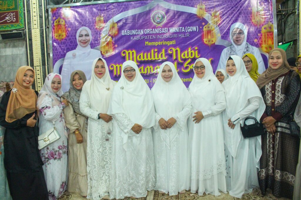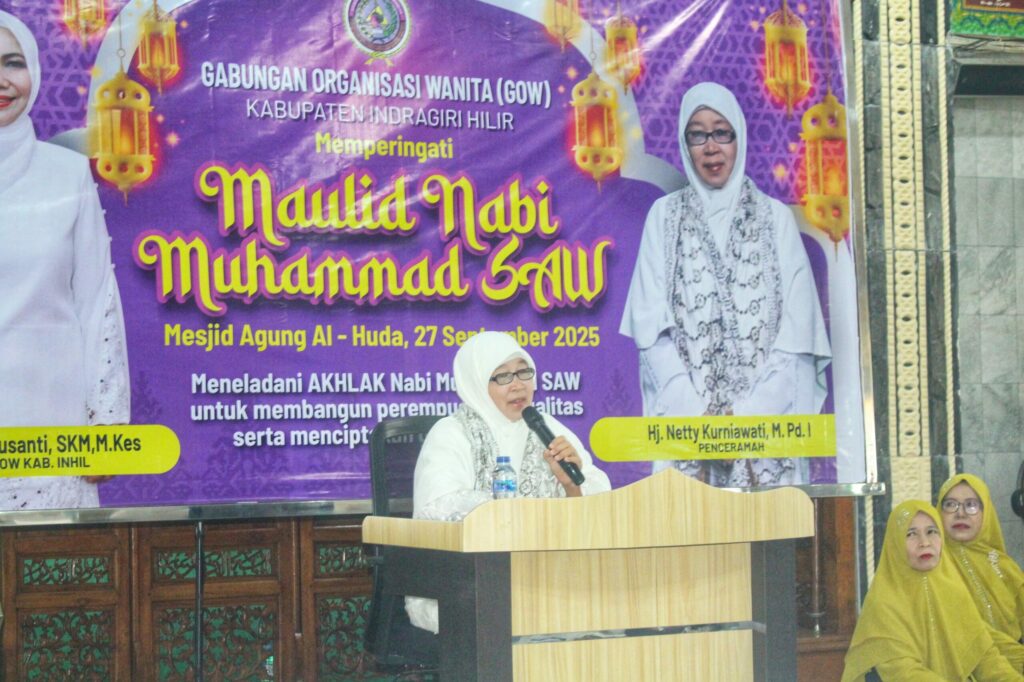 Tembilahan- Ketua Gabungan Organisasi Wanita (GOW) Kabupaten Indragiri Hilir, Hj. Katerina Susanti menghadiri peringatan Maulid Nabi Muhammad SAW yang diselenggarakan oleh Gabungan Organinasi Wanita Kabupaten Inhil, Sabtu (27/9/2025).