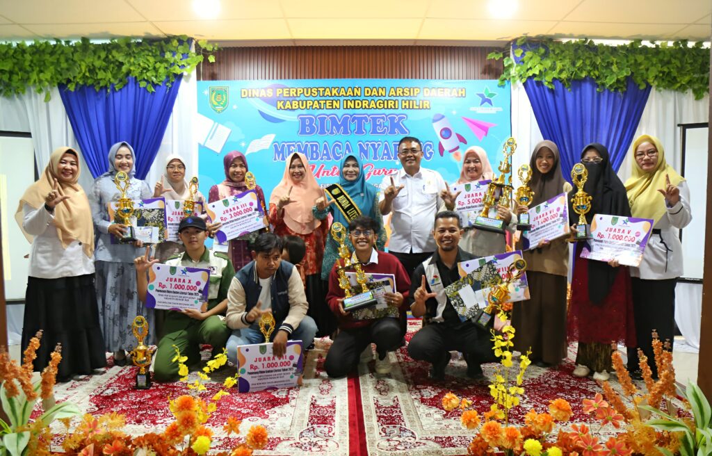 Kegiatan yang di sejalankan dengan pengumuman serta pemberian hadiah kepada pemenang lomba Video konten Literasi juga di hadiri dan di buka Bupati Indragiri Hilir yang di wakili oleh Kepala Dinas Perpustakaan dan Arsip Daerah Inhil Marta Haryadi serta Ketua DWP Inhil Hj. Safarina Tantawi.