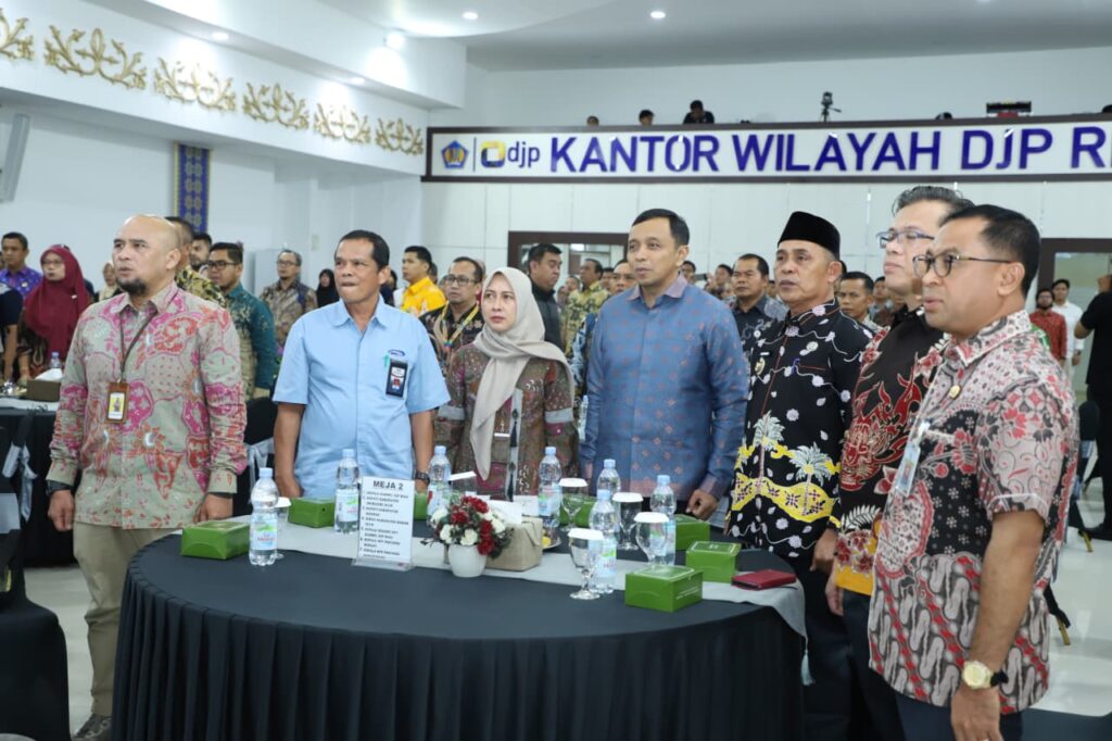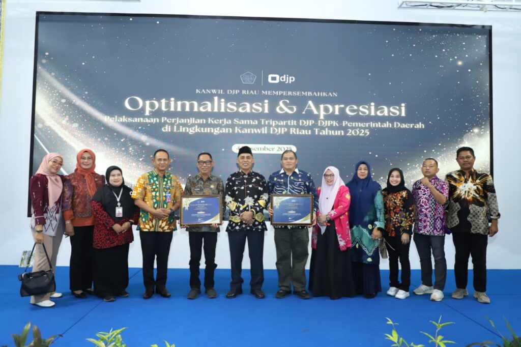 Bupati Indragiri Hilir H. Herman, SE, MT dengan didampingi Staf Ahli Bupati dan Kepala OPD terkait di lingkungan Pemkab Inhil bersama seluruh pemerintah kabupaten / kota se Prov. Riau menghadiri optimalisasi dan apresiasi pelaksanaan PKS Tripartid DJP-DJPK-Pemda dilingkungan DJP Kanwil Prov. Riau yang dilaksanakan di Aula Hangtuah Kanwil DJP Riau, Kamis (04/12/2025).