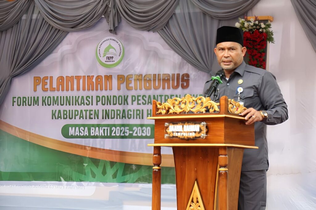 Tembilahan, -Bupati Kabupaten Indragiri Hilir, yang di wakili oleh Staf Ahli Bupati Bidang Kemasyarakatan dan Sumber Daya Manusia, menghadiri pelantikan pengurus Forum Komunikasi Pondok Pesantren (FKPP) Kabupaten Indragiri Hilir di Halaman Pondok Pesantren Darul Rahman Kecamatan Tempuling, Selasa (07/10/2025).
