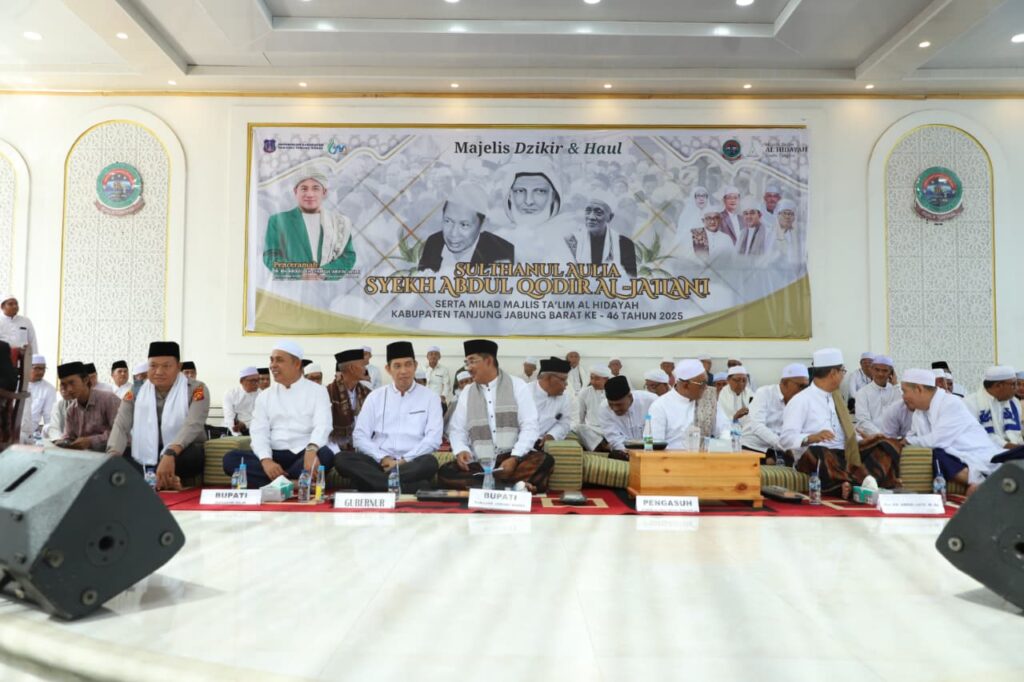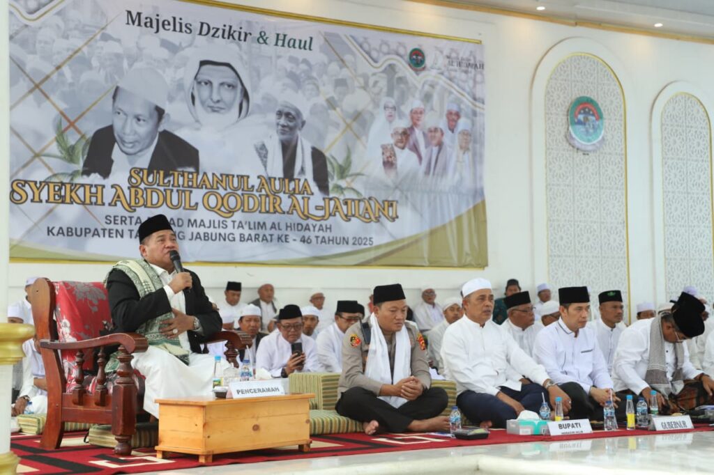 Masih dalam kunjungannya di Kabupaten Tanjung Jabung Barat, Bupati Indragiri Hilir H. Herman, SE, MT menghadiri puncak acara Haul Akbar Syekh Abdul Qadir Al-Jailani yang dipusatkan di Pondok Pesantren Al-Baqiyatush Shalihat Kuala Tungka,l Kamis (02/10/2025).