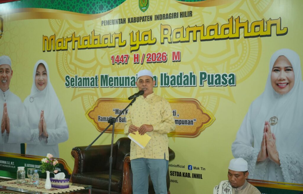 Tembilahan – Herman, S.E., M.T., yang didampingi istri Hj. Katerina Susanti, SKM., M.Kes., secara langsung menghadiri dan melaksanakan buka puasa bersama masyarakat di halaman Mess Kedaton Tua Rumah Dinas Bupati, Jalan Kesehatan, Jum’at (27/2/2026) sore.