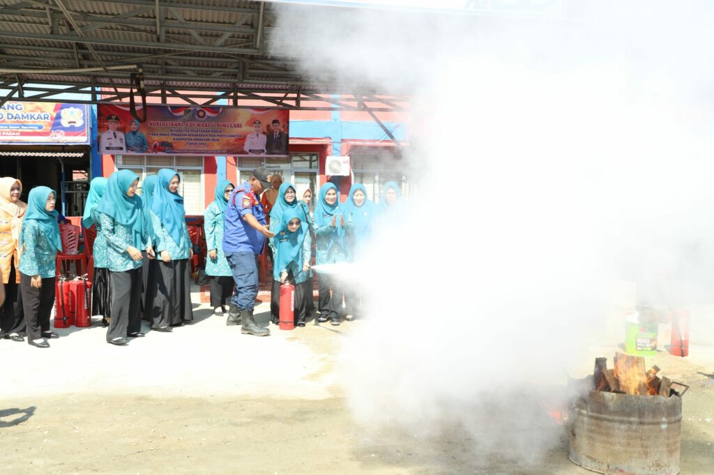 Ketua TP. PKK Kab. Inhil Membuka Sosialisasi, Edukasi & Simulasi Di Fasilitas Pelayanan Publik Pada Dinas Damkar & Penyelamatan Kab. Inhil.