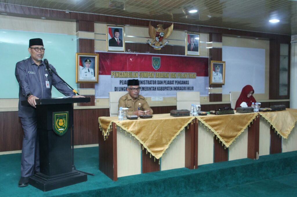 “Pelantikan seperti ini merupakan hal yang biasa dan rutin terjadi dalam lingkungan instansi pemerintahan, baik di kementerian, lembaga, maupun di Pemerintah Kabupaten Indragiri Hilir. Hal ini bukan sesuatu yang baru dan bukan pula hal yang mengejutkan,” ujar Sekda saat membacakan arahan Bupati.