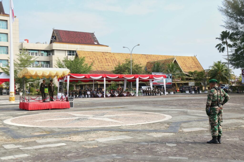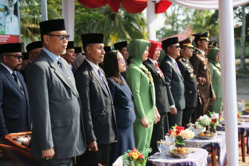 Tembilahan, -Peringatan Hari Ulang Tahun (HUT) Tentara Nasional Indonesia (TNI) ke-80 tahun 2025 berlangsung khidmat di halaman kantor Bupati Indragiri Hilir, Tembilahan, Minggu (05/10/2025). Acara ini turut dihadiri oleh jajaran Forum Koordinasi Pimpinan Daerah (Forkopimda), staf ahli Bupati, Asisten, Kepala OPD, Veteran, tokoh masyarakat, dan para tamu undangan.