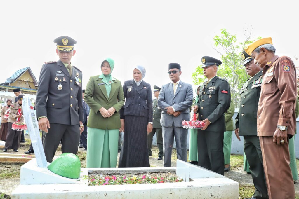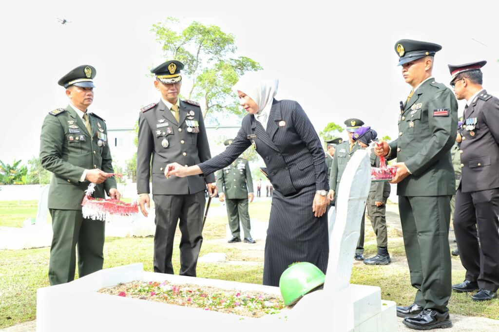 Tembilahan – Wakil Bupati Indragiri Hilir (Inhil) Yuliantini, S.Sos., M.Si menghadiri Upacara Ziarah Nasional dalam rangka memperingati Hari Ulang Tahun (HUT) ke-80 Tentara Nasional Indonesia (TNI) yang dilaksanakan di Taman Makam Pahlawan (TMP) Yhuda Bhakti Tembilahan, pada Jum’at (3/10/2025).