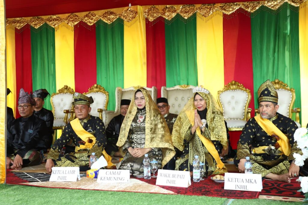 Wakil Bupati Indragiri Hilir yang bergelar Datuk Seri Timbalan Setia Amanah Puan Yuliantini S. Sos, M.Si menghadiri pelantikan pengurus LAMR Kec. Kemuning untuk periode 2025 – 2030 yang disejalankan dengan pemberian gelar adat melayu kepada Camat serta pemberian tepuk tepung tawar untuk Kapolsek & Danramil Kec. Kemuning yang dilaksanakan di Pasar Air Balui Kec. Kemuning, Sabtu (10/01/2026).