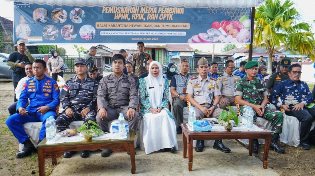 Tembilahan – Wakil Bupati Indragiri Hilir, Yuliantini, S.Sos., M.Si., menghadiri sekaligus memimpin kegiatan pemusnahan 48,39 ton komoditas pangan ilegal, Kamis (16/4/2026). Kegiatan ini dilaksanakan di Kantor Karantina, Jalan Griliya Parit 8, Tembilahan Hulu.